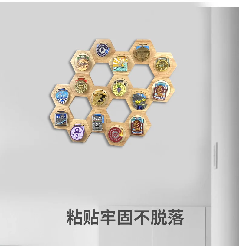 Wooden Hexagon Medal Display Stand Household Honeycomb Wooden Wall Medal Hanger