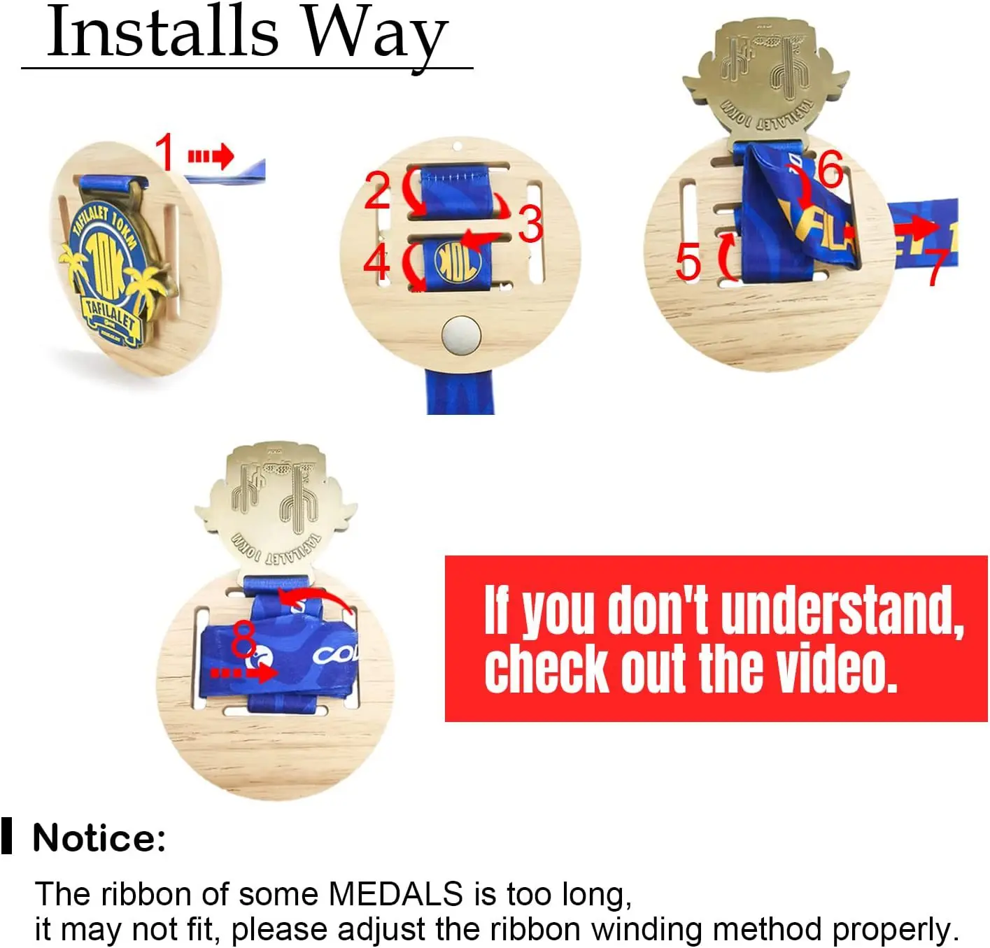 Wooden mdeal holder, simply tie medal in, stick to wall and see your gallary of wins grow!